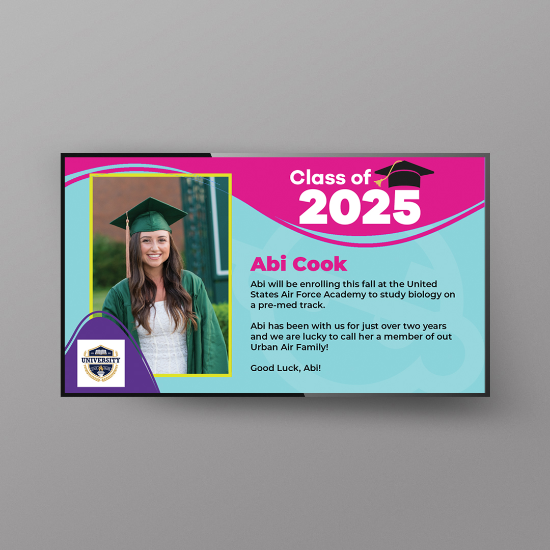 UA Graduation Announcement TV Screen